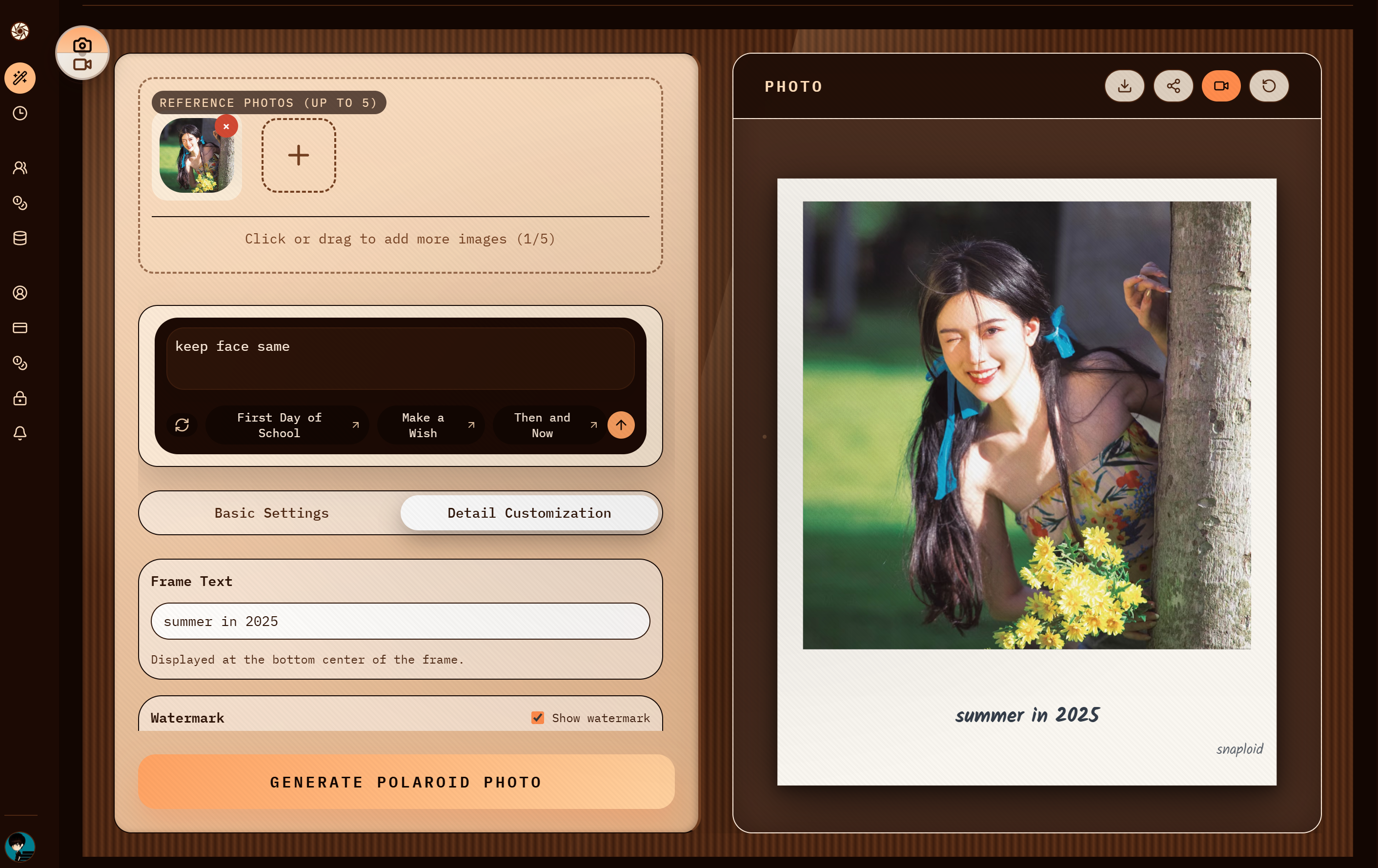 Snaploid AI 生成的拍立得照片: